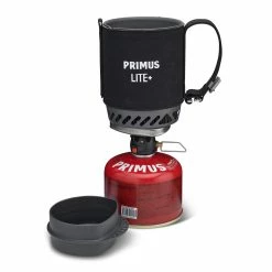 - Lightweight system stove burner locks securely to the pot when in use and packs conveniently inside with a 100g gas canister